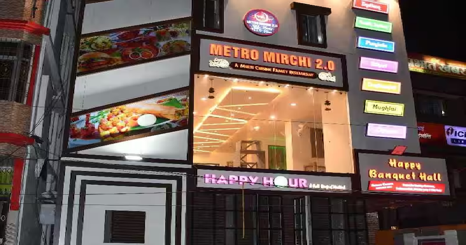 Metro Mirchi 2.0 is a casual bar-style restaurant that offers a balanced mix of food and beverages. It is suitable for tourists who want a relaxed dinner experience with light drinks in a comfortable seating arrangement.